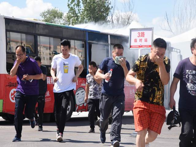 按照演練方案要求,整個(gè)演練活動(dòng)分為增強(qiáng)反恐、消防意識(shí),對(duì)消防器材全面掌握以及使用,模擬公交車起火逃生演練三部分。市公安局反恐支隊(duì)副支隊(duì)長張愛友講解反恐工作的主要內(nèi)容及防范重點(diǎn);市消防局凌河消防大隊(duì)的官兵講解及示范滅火器的使用方法。最后,模擬演練了公交車突發(fā)火情,駕駛員組織乘客應(yīng)急逃生。在演練現(xiàn)場,一輛公交車在行駛中突然濃煙滾滾,駕駛員按照預(yù)定方案迅速打開前后車門,引導(dǎo)乘客有序逃生……